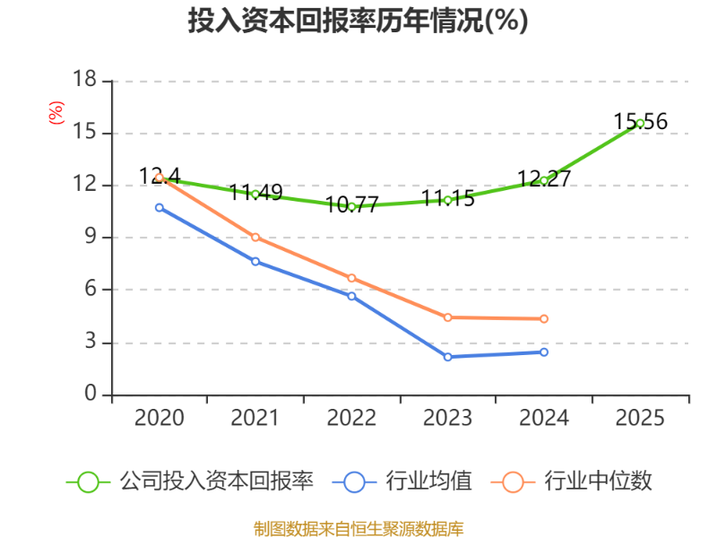 数据显示,2025年公司加权平均净资产收益率为21.65%,较上年同期上升5.8个百分点。公司2025年投入资本回报率为15.56%,较上年同期上升3.29个百分点。
